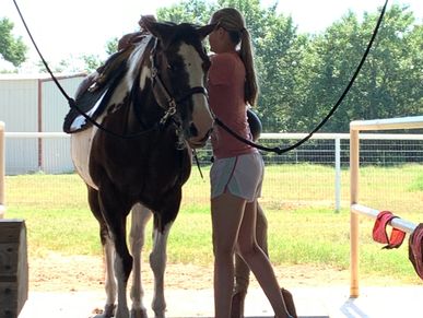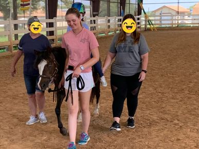 As a riding leader, I prepare the horse, then lead or walk alongside it, ensuring client safety (and making sure we have an extra boost to win Red Light, Green Light) during training sessions conducted by certified therapeutic instructors.